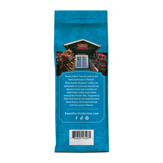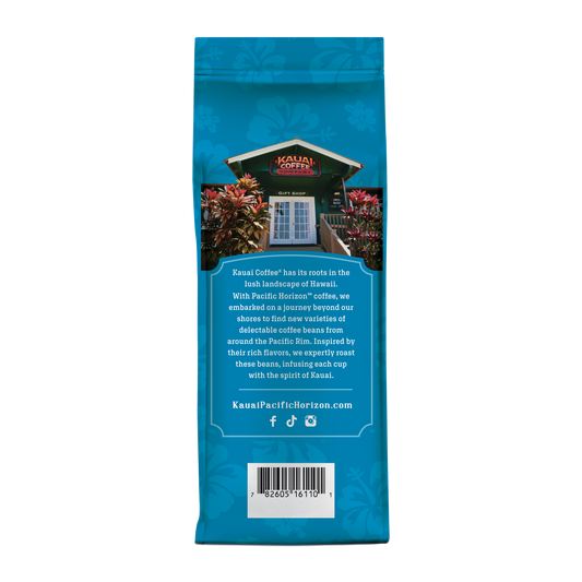 Kauai Coffee® has its roots in the lush landscape of Hawaii. With Pacific Horizon™ coffee, we embarked on a journey beyond our shores to find new varieties of delectable coffee beans from around the Pacific Rim. Inspired by their rich flavors, we expertly roast these beans, infusing each up with the spirit of Kauai.